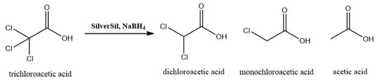 Reductive dehalogenation of trichloroacetic acid (TCA) with sodium borohydride mediated by SilverSil.