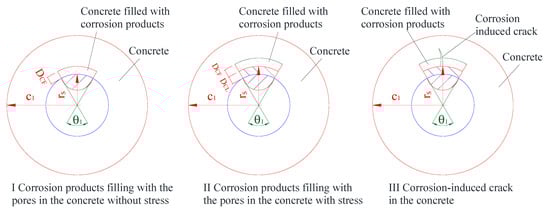 2.3. Expansive Stress of the Concrete Cover Induced by the Corrosion Products (Stage II)