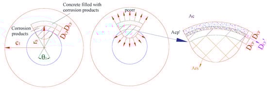 | corrosion pressure in the concrete at the radius rs along the radius direction; | |