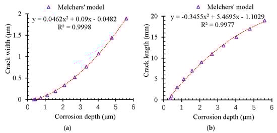 - With the propagation of the corrosion, the width and the length of the corrosion-induced crack were developed in a non-linear way in the concrete cover. The pitting depth of 6 μm would lead to an inner crack with a length of 20 mm and a width of about 2 μm in the concrete cover.