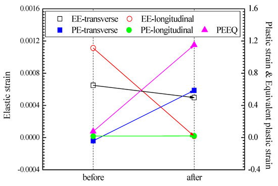Variation of elastic strain, plastic strain and equivalent plastic strain before and after UIT.