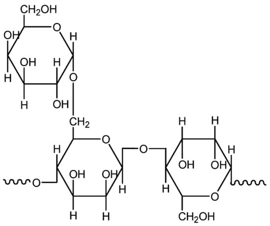 Extensive studies have probed starch on account of its rich variety, biodegradability, availability, and abundance in nature. Starch is the end-product of photosynthesis in plants. It is a natural carbohydrate-based polymer that is mainly harvested from corn, potato, wheat, tapioca, and rice [10]. The application of starch does not stop in major food products, but has been extended to various diversified areas. Starch is used in other applications as binders, adhesives, absorbents, and encapsulants [12]. Natural starch is a mixture of linear amylose or poly(α-1,4-d-glucopyranose) and α-1,6-branched amylopectin, wherein their components might varied depending on the plant sources [12,13]. Figure 4 illustrates the structures of amylose and amylopectin. Since these two compounds contain hydroxyl groups, the starch-based polymer emerges as a viable option to be used as a polymer host for electrolyte purposes.