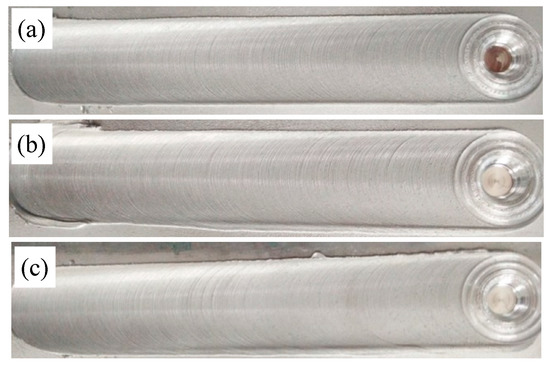The weld surfaces of the friction stir welds (FSWs) under different states: (a) T1; (b) T4; (c) T6.
