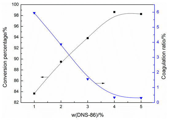 3.1. Effect of the DNS-86 Amount on Polymerization