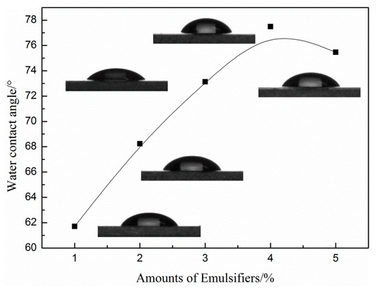 3.3. Effect of the DNS-86 Amount on Water Resistance of the Latex Film