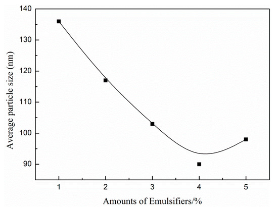 3.4. Effect of the DNS-86 Amount on Size of Latex Particles