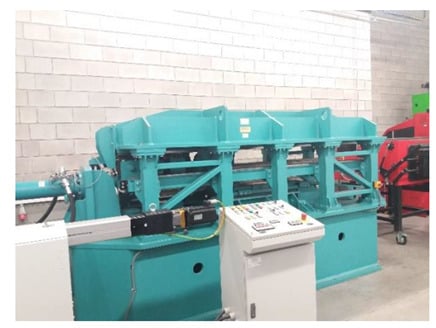Physical testing was conducted in a model rolling mill, designed and constructed for the research. The lab stand for physical modelling was set up as an additional module of a laboratory chain drawing machine, as shown in Figure 4. The model rolling mill allows one to conduct 1:2 and 1:2.5 scale real tests.