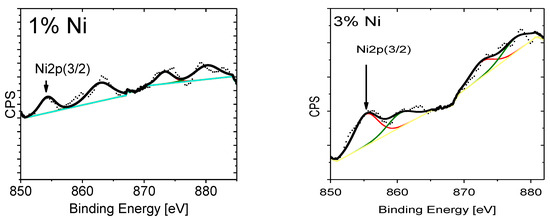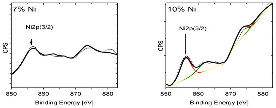 High-resolution XPS spectra are plotted for the Ni2p photoelectrons. XPS is recorded for the ZnNiO samples containing 1%, 3%, 7% and 10% Ni weight percentages.