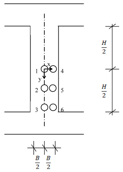 Possible locations along column to place a probe. H: height of column; B: side dimension of column.