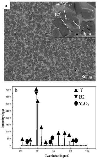 - Zhang, D.; Liu, N.; Chen, Y.; Zhang, G.; Tian, J.; Kong, F.; Xiao, S.; Sun, J. Microstructure Evolution and Mechanical Properties of PM-Ti43Al9V0.3Y Alloy. Materials 2020, 13, 198. [Google Scholar] [CrossRef]