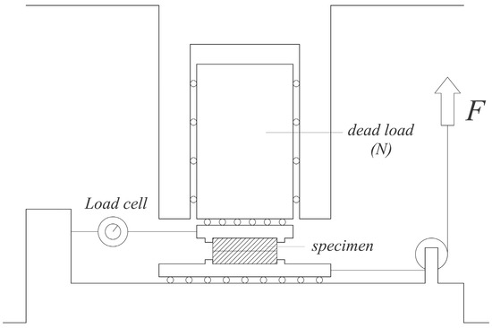 The dimensions of each of the two prismatic pieces that formed every specimen were 80 × 20 × 20 mm3. During testing, a constant vertical dead load (N) of 2.435 kN was acting on the specimen while another horizontal force (equivalent to the friction force, FR) was applied to the bottom piece (Figure 2).