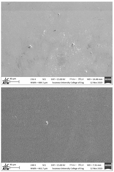 Current density–voltage (J-V) curves for all devices were measured while using a 2400 Series Source Meter (Keithley Instruments, Farnell, Leeds, UK) under simulated AM 1.5 sunlight at 100mW cm−2 irradiance using an Abet Class AAB simulator (Sun 2000, Connecticut, US) that was calibrated with a ReRa solutions Si reference cell and with a PSC device active area of 0.15 cm2. X-ray diffraction data were measured using a Philips Bruker D8 (Cambridge, UK) discover instrument with a Cu source (λ = 1.54060 Å). Thermal gravimetric analysis and differential scanning calorimetry data were measured while using a LABSYS evo STA (Stockport, UK). The pastes were pre-dried at 100–110 °C for 2 h to evaporate the solvent to focus analysis on binder combustion. The samples were ramped at 10 °C min−1 under flowing air. The scanning electron microscopy images were measured using a Zeiss Evo MA25 (Cambridge, UK) high resolution scanning electron microscope with a LaB6 electron source (Cambridge, UK).