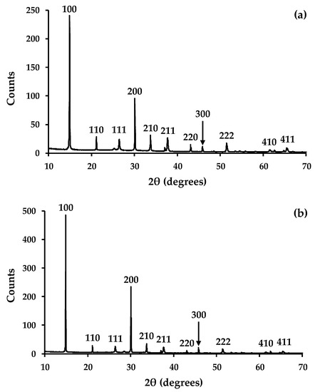 To test perovskite stability, the CH3NH3PbBr3 films were deposited onto TiO2, CeO2, or MnO2 films, as described previously, these films were then subjected them to UV light (λ = 365 nm) for 24 h using a 6 Watt lamp (Analytikjena UVLS-26 EL Series, Jena, Germany), whilst also in a high humidity environment (>70%). Humidity was generated while using a GenRH Humidity generator (Surface Measurement Systems Ltd., Middlesex, UK) using de-ionized water. X-ray diffraction data of these films were analyzed before and after exposure to UV/humidity.
