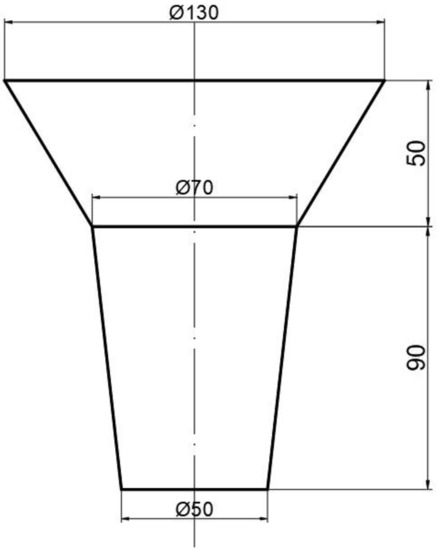 Shape and dimension of the ingot (unit: mm).