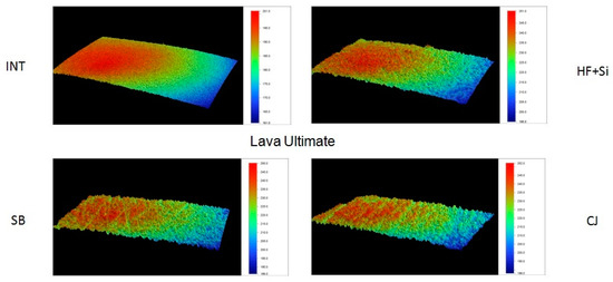Representative 3D topographic surface maps of Lava Ultimate (×20 magnification).