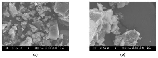SEM images of the white cement: (a) Room temperature; (b) 440 °C.