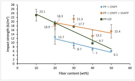 In order to compare ONPF-reinforced composites with commercial commodities, Figure 3 displays the impact strengths of ONPF composites with GF-reinforced PP materials.