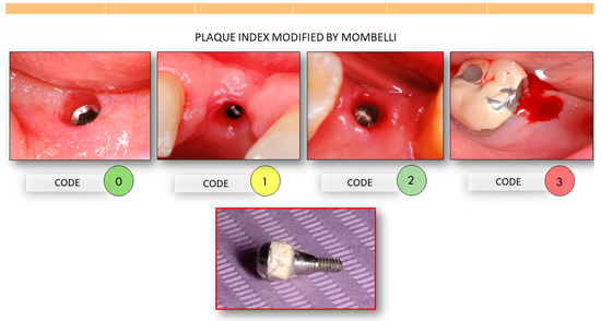 The degree of plaque accumulation on the abutment was recorded following the modified Mombelli plaque index [35].