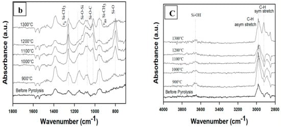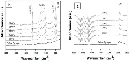 - Hurwitz, I.; Heimann, P.; Farmer, C.; Hembree, M. Characterization of the pyrolytic conversion of polysilsesquioxanes to silicon oxycarbides. J. Mater. Sci. 1993, 28(24), 6622–6630. [Google Scholar] [CrossRef]