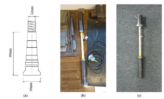 Samples for determining the tensile behavior of GFRP bars: (a) dimensions of the head anchorage of GFRP Schöck Combar; (b) straight bar sample; (c) headed bar sample.