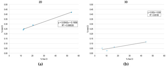 Free chloride content in different mixes at early ages: (a) at two days and (b) at three days.