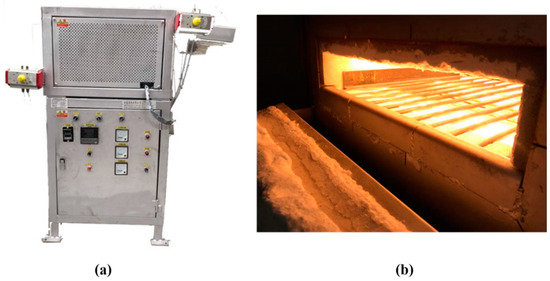 The heat treatment was performed in an infrared (IR) heating furnace and a resistance heating (RH) furnace (RH, CM30S, CHENG SANG, Changhua, Republic of China (Taiwan)), respectively. The IR heating furnace was developed at our laboratory. Figure 2 shows photographs of the IR heating furnace. The heating rate of the IR heating furnace has been published in our previous research [7].