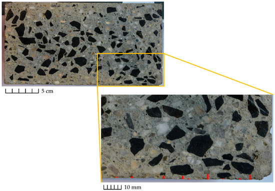 To increase the accuracy of this method, the particles of each group should have a different texture or color. The aggregates can be composed of quartz aggregates of 2–4 mm, basalt aggregates of 4–8 mm and granite aggregates of 8–16 mm. Alternatively, model concrete containing glass beads of different colors can be used to determine the particle distribution that is resulted from SIPM.