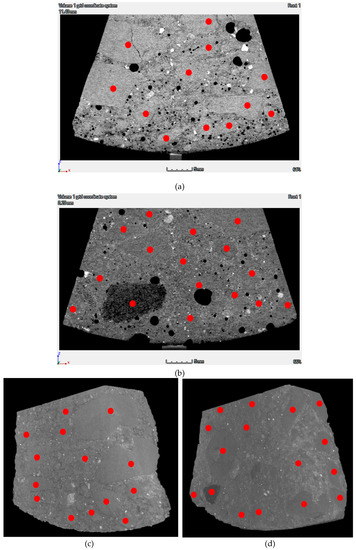 where is the particle radius (m), and are dimensionless phenomenological constants obtained by fitting the equation to experimentally observed local particle distributions. Shauly et al. [16] adapted Equation (7) for polydispersed systems with discrete and continuous particle distributions. Validation of such models for concrete requires the correct determination of particle distribution, which is no straightforward procedure in opaque concrete.