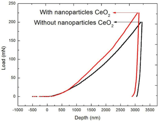 The reduction of CeO2 to Ce2O3 has been reported in the high temperature sintering of fine CeO2 particles by [22,23]. The authors in reference [24] have also proved the conclusion by High Resolution Transmission Electron Microscopy (HRTEM) imaging and Fast Fourier Transformation (FFT) diffraction. Thus, nanoparticles of CeO2 can improve the bonded strength, as CeO2 nanoparticles have strong functions of oxygen storage and release and, thus, the addition of CeO2 nanoparticles play an important role for a novel system of CeO2–Cu2O–Cu at an Ar pressure of 0.12 MPa.