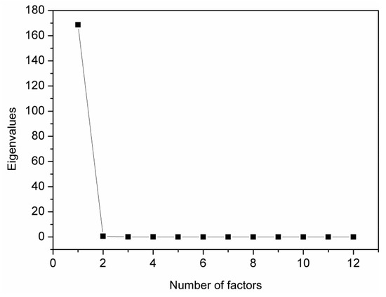 Eigenvalues for 12 factors (12 spectra of PUR-PIR foams).