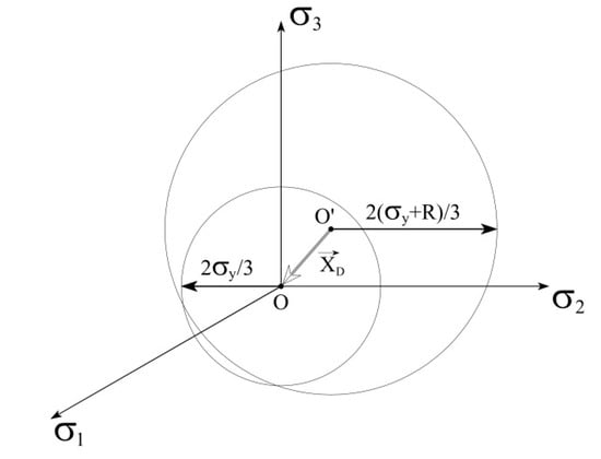 In Equation (15), denotes the back stress tensor (that can be interpreted as a vector XD pointing to the origin of the yield surface in the stress space; see Figure 4).