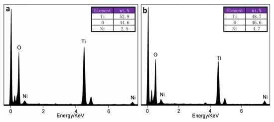 - Xu, Z.; Wang, S.; Ma, C.; Luo, K.; Fang, F. Effect of Nickel Doping on Phase Transformation of TiO2 Nanotube Arrays. Phys. Status solidi (a) 2019, 216, 1800836. [Google Scholar] [CrossRef]