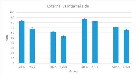 - Colombo, M.; Poggio, C.; Lasagna, A.; Chiesa, M.; Scribante, A. Vickers micro-hardness of new restorative CAD/CAM dental materials: Evaluation and comparison after exposure to acidic drink. Materials 2019, 12, 1246. [Google Scholar] [CrossRef] [PubMed]