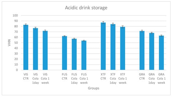 | 1C | VIS | 1-week acid drink | 71.70 (1.68) c | 69.60 | 71.65 | 74.70 |
