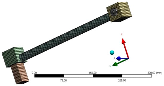 The calculations were conducted in the software ANSYS 16.2, using the Explicit Dynamics module. A numerical model of the tested samples was built (Figure 5).