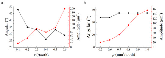 Effect of p and r on the peak amplitudes of the angular spectrum and the corresponding angular. (a) Effect of r; (b) Effect of p.