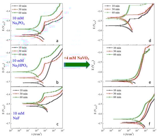 - Salman, S.A.; Kuroda, K.; Okido, M. Formation of Vanadate Conversion Coating on AZ31 Magnesium Alloy. In Magnesium Technology 2013; John Wiley & Sons, Inc.: Hoboken, NJ, USA, 2013; pp. 181–187. ISBN 9781118605523. [Google Scholar]