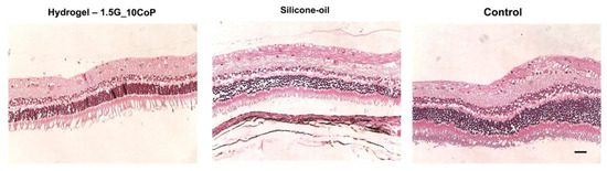 From the hydrogel and the silicone-oil eye groups compared with the control, it is difficult to formulate a conclusion for the retinal morphology changes. However, we do not see significant differences thus far.