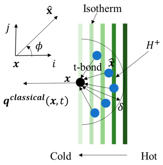In the 2-D case, the classical heat flux vector between and along the t-bond because of their temperature difference can be written as [24]: