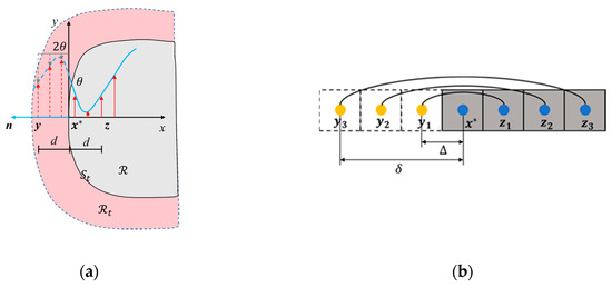 In general, the PD method causes the boundary effect by applying a fixed temperature directly to the material points at the boundary [23,24]. This boundary condition application method will result in incomplete neighborhood of the material points near the boundary, thereby weakening the boundary condition. This paper refers to the method of the fictitious nodes [26] when dealing with the Dirichlet boundary conditions. Based on his research, the extent of the virtual boundary layer to be equal to the horizon, δ in order to ensure that the prescribed temperatures sufficiently reflected in the actual material region. As shown in Figure 3, Dirichlet boundary condition, can be applied in the virtual boundary layer, along the boundary of the body surface, as: