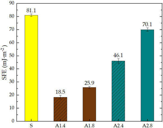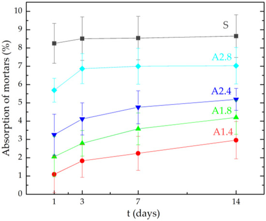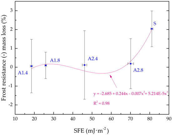 - Mortars A1.4 showed the smallest total SFE, equal to 18.5 mJ∙m−2, which is 77% lower than standard S mortars.