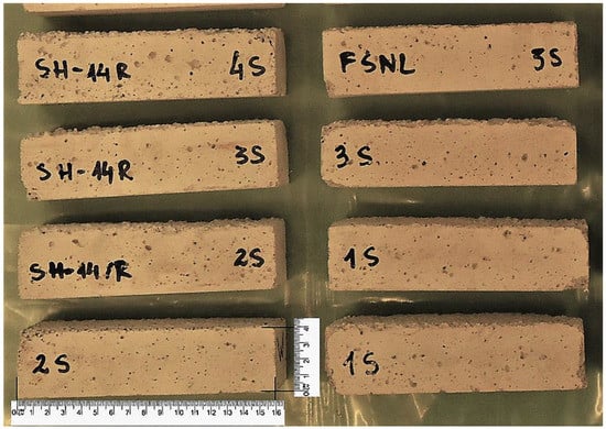 - European Committee for Standardization. EN 1015-11:2001. Methods of Test for Mortar for Masonary—Part 11: Determination of Flexural and Compressive Strength of Hardened Mortar; CEN: Brussels, Belgium, 2001. [Google Scholar]