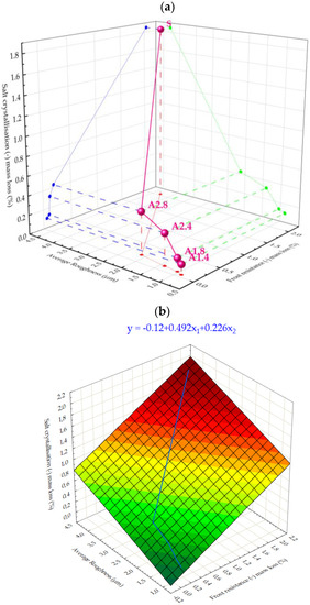 - dispersion component of SFE:where: is the SFE of diiodomethane, is the dispersive component of diiodomethane SFE, is the polar component of diiodomethane SFE, is the SFE of distilled water diiodomethane, is the polar component of water SFE, is the contact angle (CA) of diiodomethane and is the CA of water.