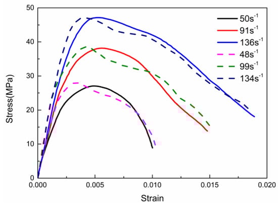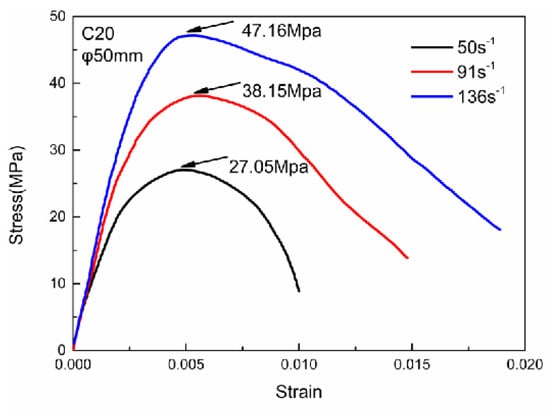 2.2. Split Hopkinson Pressure Bar (SHPB) Experimental Results