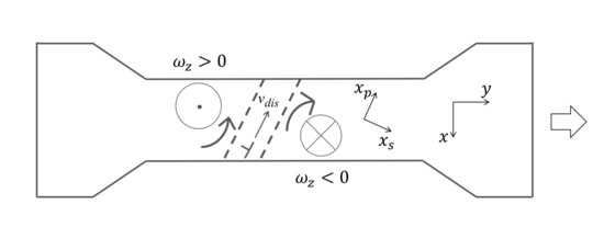 Experiments indicate that when criterion (35) or (36) is satisfied, the charge takes the one-dimensional form of running across the specimen along the boundary of opposite rotations [31]. As illustrated in Figure 1, the charge in this form appears to be a banded structure localized at the location where the partial or total fracture occurs. Call this type of charge the developed charge [32]. Here, and are axes parallel and perpendicular to the banded structure. When the total fracture criterion is satisfied, the specimen fails at the location of the developed charge and becomes stationary [27,28]. As will be discussed later in this paper, it is believed that dislocations running along the axis are responsible for the formation of a developed charge.