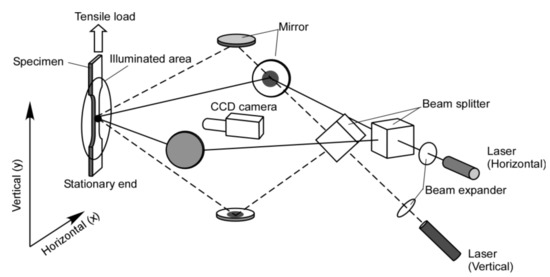 - Sasaki, T.; Yoshida, S. Revealing load hysteresis based on electronic speckle pattern interferometry and physical mesomechanics. Phys. Mesomech. 2012, 15, 47–57. [Google Scholar] [CrossRef]