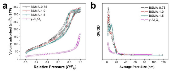Figure 5 provides the nitrogen adsorption-desorption isotherm and corresponding Barrett–Joyner–Halenda (BJH) pore-size distributions of the BSMA samples.