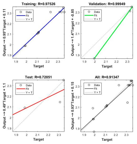 The validation and test outcomes additionally demonstrated the R-value that was more prominent than 0.90. The comparative analysis of the test and the anticipated value of erosion are shown in Table 5. The obtained results for erosion shows 0.043% deviation concerning results obtained from RSM (Figure 10). The attained conclusions designated a prodigious pact between neural system anticipation and test validation standards.