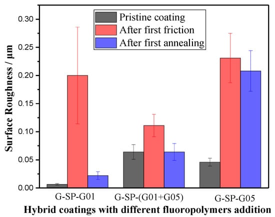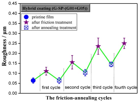 The surface roughness of the hybrid coatings during the first friction-annealing cycle.