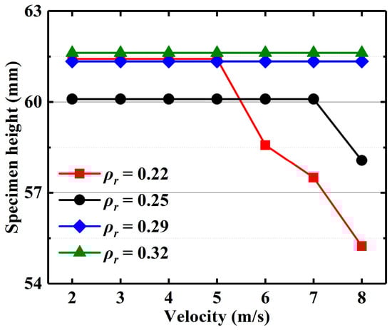 The height of EMWM specimen with different relative densities under different impact velocities.